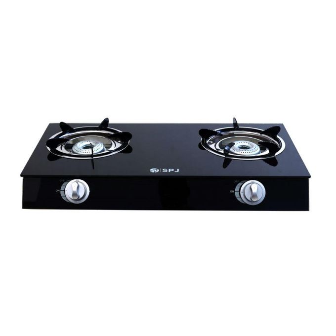SPJ Double Burner Glass Gas Stove With Auto Ignition - Black
