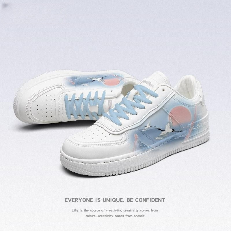 Product information: Pattern: cartoon Color: MW white antique style white crane X (sky blue shoelace) Upper height: low top Shoe Upper material: artificial pu Size: 35, 36, 37, 38, 39, 40 Applicable gender: neutral/both men and women Applicable age: Adult Suitable season: spring Style: Sports