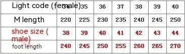 Size: 35 (female),36 (female),37 (female),38 (female),39 (female),40 (male),41 (male),42 (male),43 (male),44 (male)