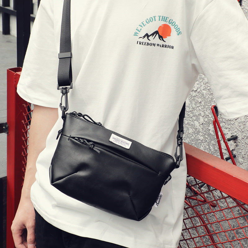 Style: urban simplicity Material: Polyester Bag shape: horizontal square Opening method: zipper Bag internal structure: sandwich zipper bag Strap root number: single Bag size: small Processing methods: soft surface Carrying parts: soft handle Outer bag type: digging bag Popular elements: postman Lining texture: canvas Color: black, blue, gray, PU leather black Is there a mezzanine: Yes Accommodating computer size: 8 inches