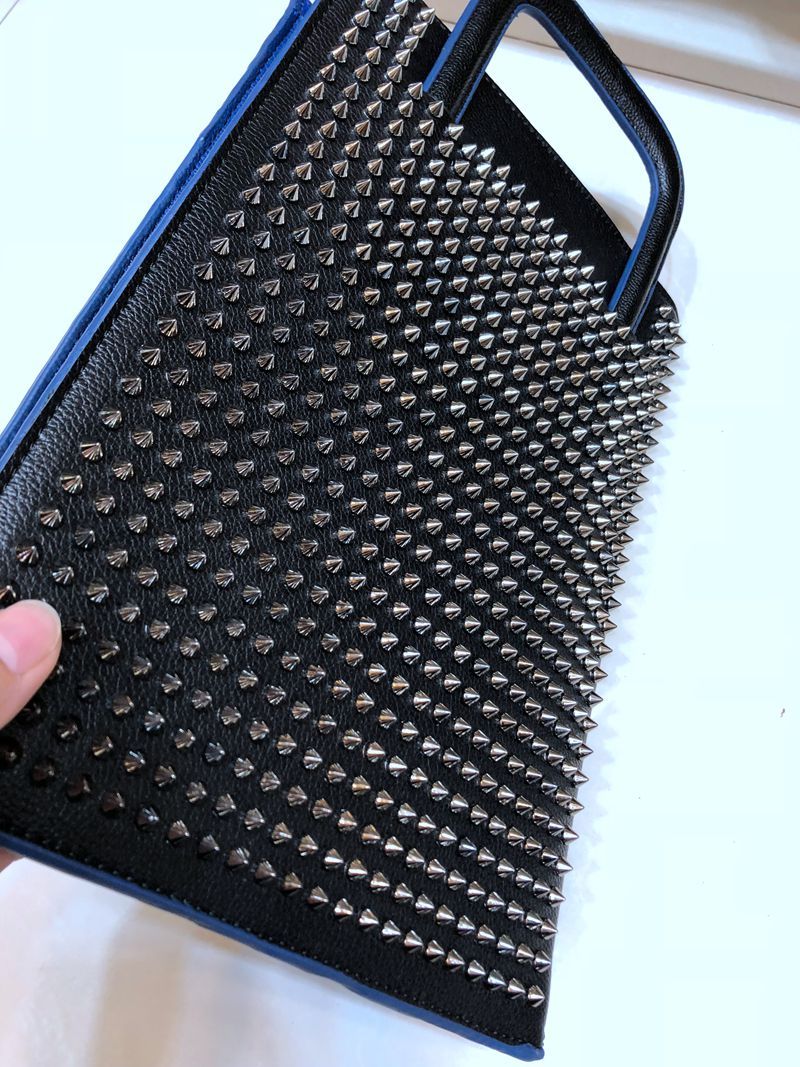 Product information : Material: cow leather Cortical features: bovine two-layer leather Pattern: plain Closure: zipper Popular elements: rivet Internal structure: other banknote clips, change bits, passbook bits, zipper pockets Color: black Size Information: Size: width 23CM length 32CM error 1~3CM Packing list: Handbag*1