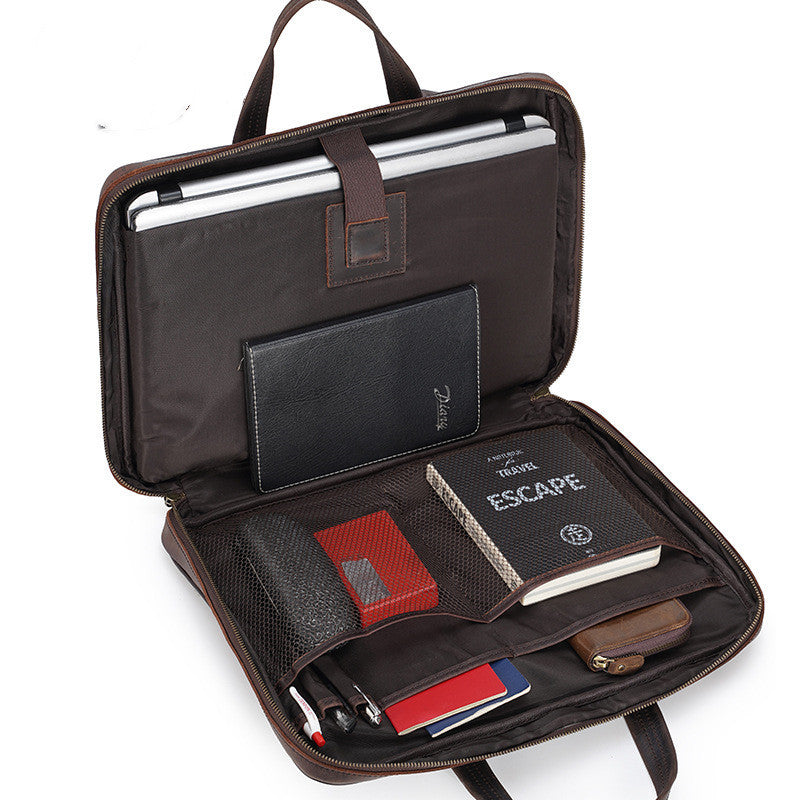 Style: Europe and The United States retro Material: Genuine leather Cortical features: Cephalic cowhide Case shape: horizontal square Internal structure: zipper pouch, mobile phone bag, ID bag, sandwich zipper bag, computer insert bag Style: Handbag Number of straps: single Applicable gender: Male