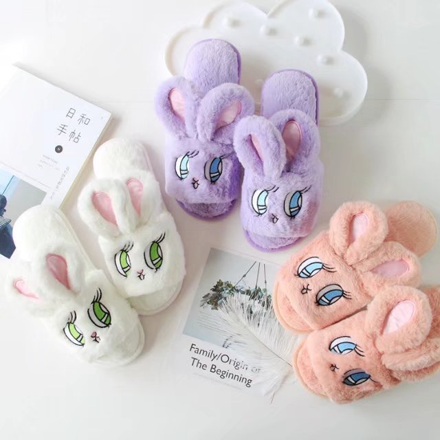 Type of slippers: Flip Flops Sole material: TPR Function: warm, antiskid, breathable Popular element: Rabbit Thickness: normal thickness Suitable season: autumn, winter Vamp material: suede Sole technology: sewing shoes Style: cartoon Style: open toe Sole thickness: 1.5cm (included) - 3.5cm (not included) Color: wego rabbit mouth shoes white, wego rabbit fish mouth shoes purple, wego rabbit fish mouth shoes pink, wego rabbit fish mouth shoes orange Size: 36 / 37,38 / 39