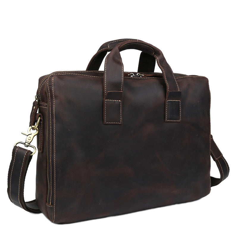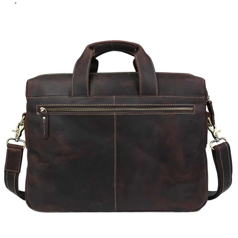 Product information: Supply category: spot Material: Leather Cortical features: cowhide Bag shape: horizontal square The internal structure of the bag: zipper pocket, mobile phone bag, certificate bag, sandwich zipper bag, computer pocket Style: shoulder bag Strap root number: single Applicable gender: male Brand: tiding/fashion cattle Carrying parts: soft handle Processing method: frosted Size: 16 inches Opening method: zipper Popular element: locomotive Outer bag type: inner patch pocket Lining texture: polyester cotton Hardness: medium to soft Color: no logo spot dark brown P10633X