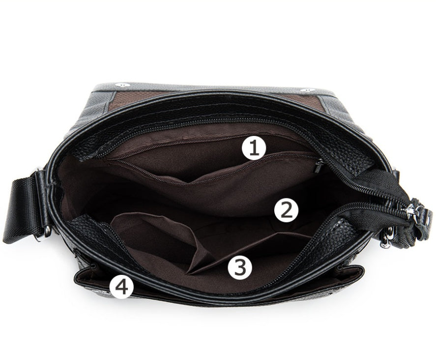 The internal structure of the bag: zipper pocket, mobile phone bag, document bag