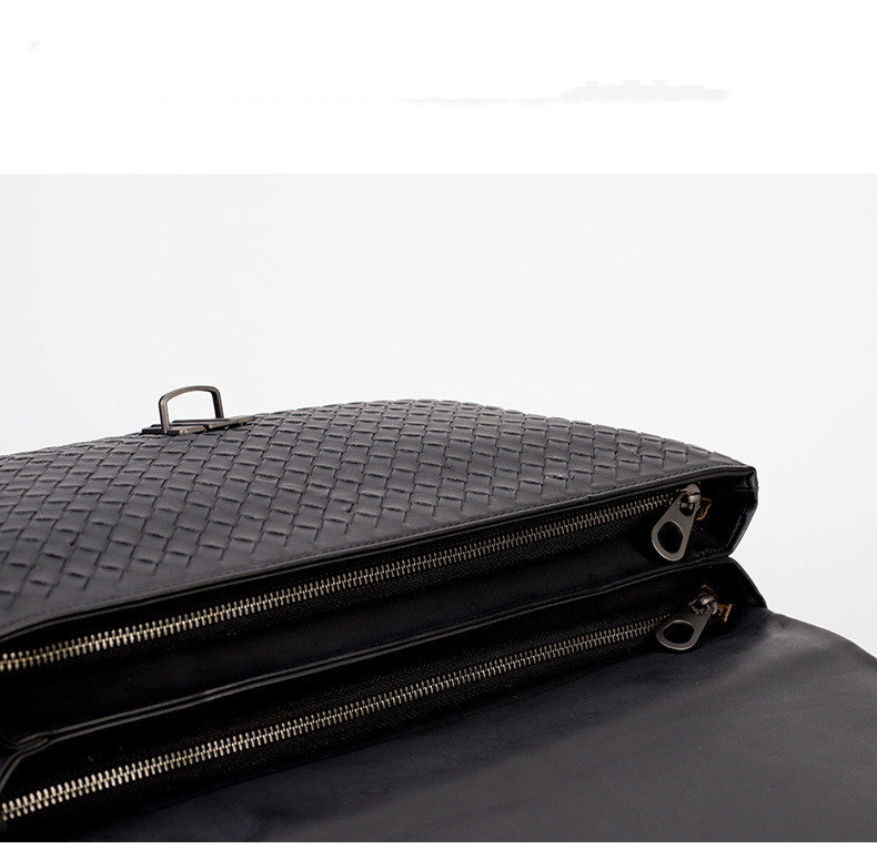 Product information : Material: Microfiber synthetic leather Bag shape: horizontal square Luggage size: large Opening method: lock The internal structure of the bag: mobile phone bag Number of shoulder straps: no shoulder straps Processing methods: soft surface Style: men's handbag Pattern: plain Popular elements: weaving Carrying parts: soft handle Colour: Black Capacity : Below 20L Size Information: Size: 38x10x27cm Packing list: Handbag*1