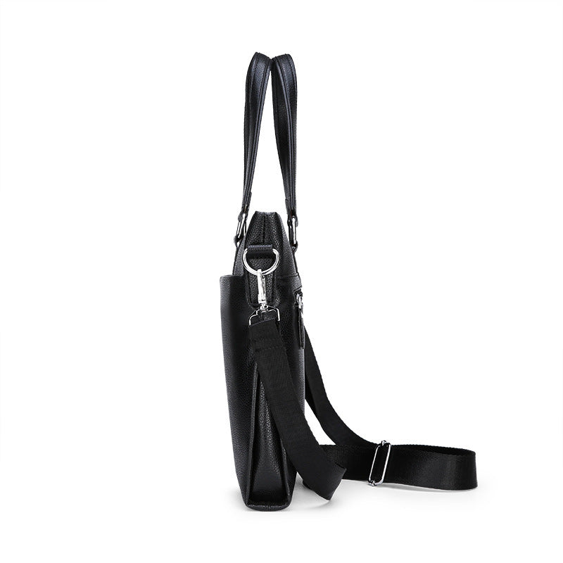 Style: Business Item no: 8052 Material: Synthetic leather Case shape: horizontal square Bag size: Large Open cover: Zipper Internal structure: mobile phone bag, sandwich zipper bag, zipper pouch Number of straps: single Processing method: soft surface Style: Men's handbag Pattern: Solid color Popular element: Stone lines Lift parts: stevedoring type lift Size: 12 inches Capacity: 20-35 l Hardness: soft Color: Black, brown