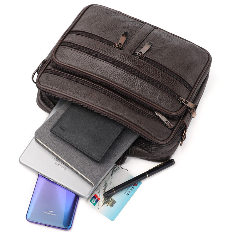 Size: 27cm * 23cm * 7cm Material: Cowhide