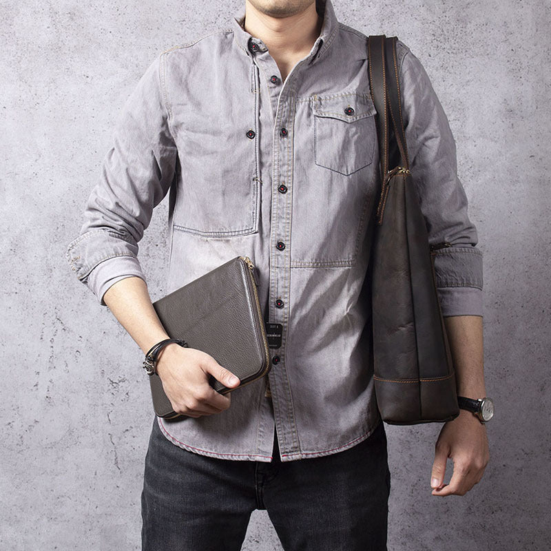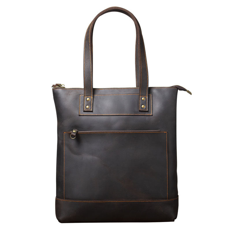 Style: Casual Material: Leather Cortex features: first layer cowhide Bag shapes: square vertical section Opening method: zipper The internal structure of the bag: zipper pocket, mobile phone bag, document bag, sandwich zipper bag Strap root number: double root Bag size: medium Carrying parts: soft handle Hardness: medium to soft Pattern: plain Color: dark coffee