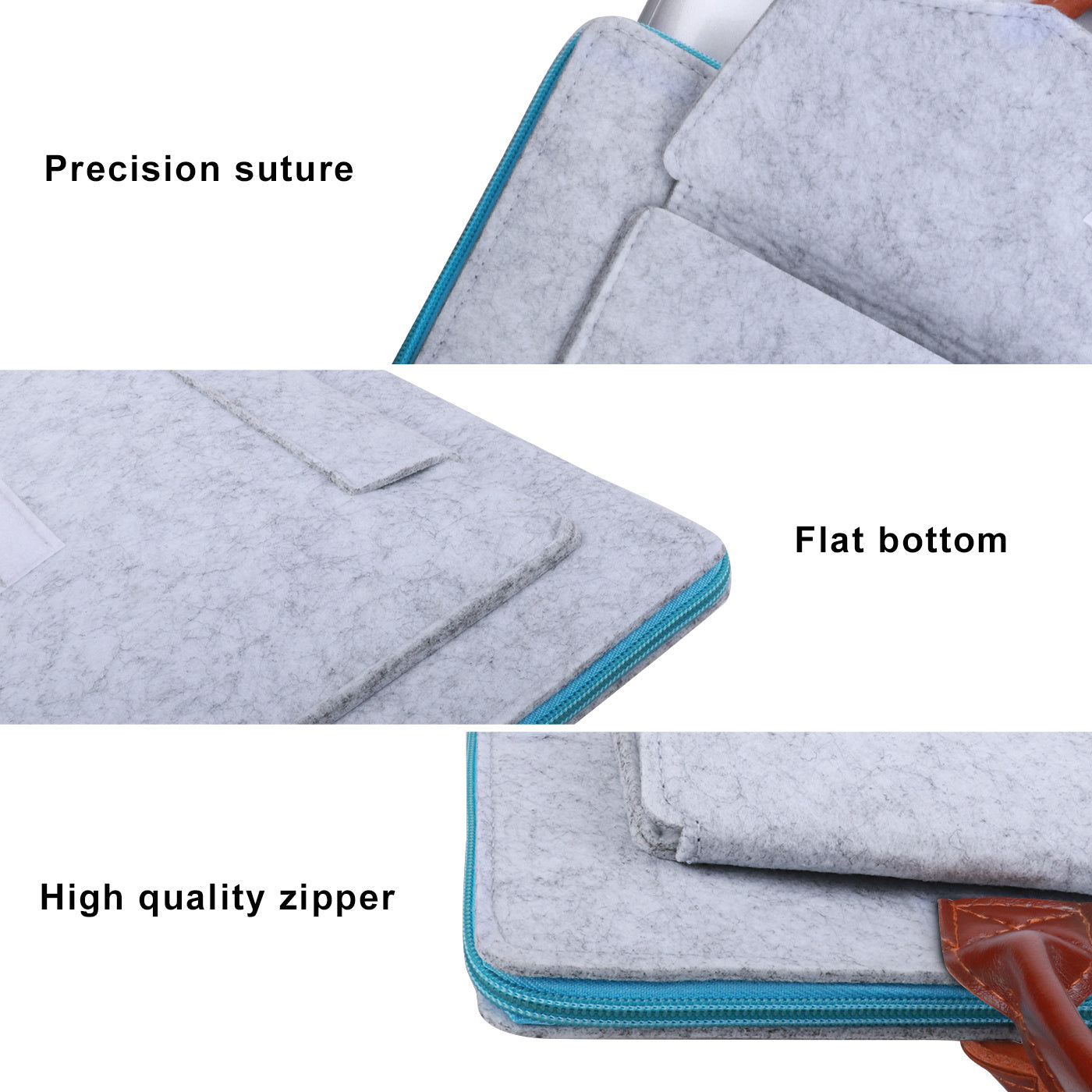 Product Details Composition and content: chemical fiber Weight: 600 (g/㎡) Specific use: computer bag Alias: felt computer bag Color: black, light gray Specifications: 11 inches, 12 inches, 13 inches, 14 inches, 15 inches, 16 inches, 17 inches Packing list Computer bag x1