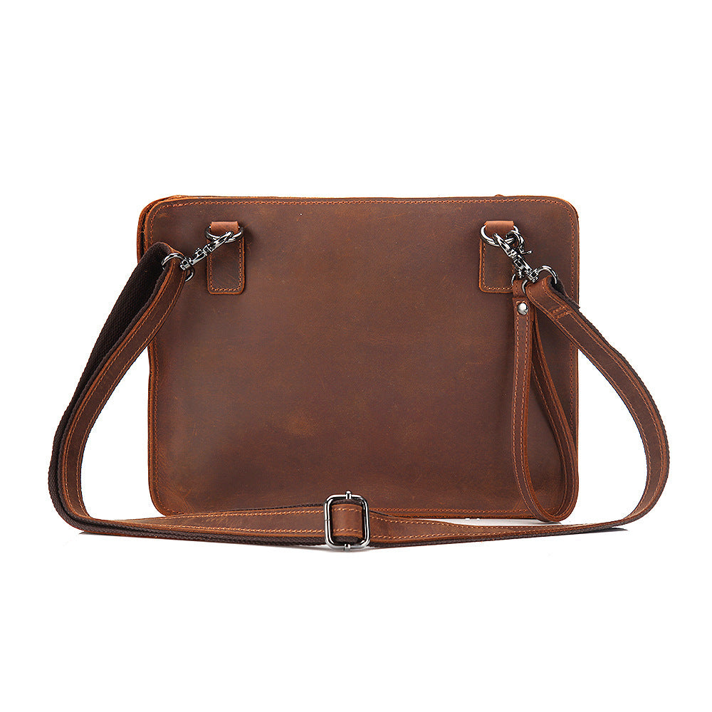 Style: leisure Material: Leather Cortical features: top layer cowhide Opening method: zipper Strap root number: single Carrying parts: detachable handle