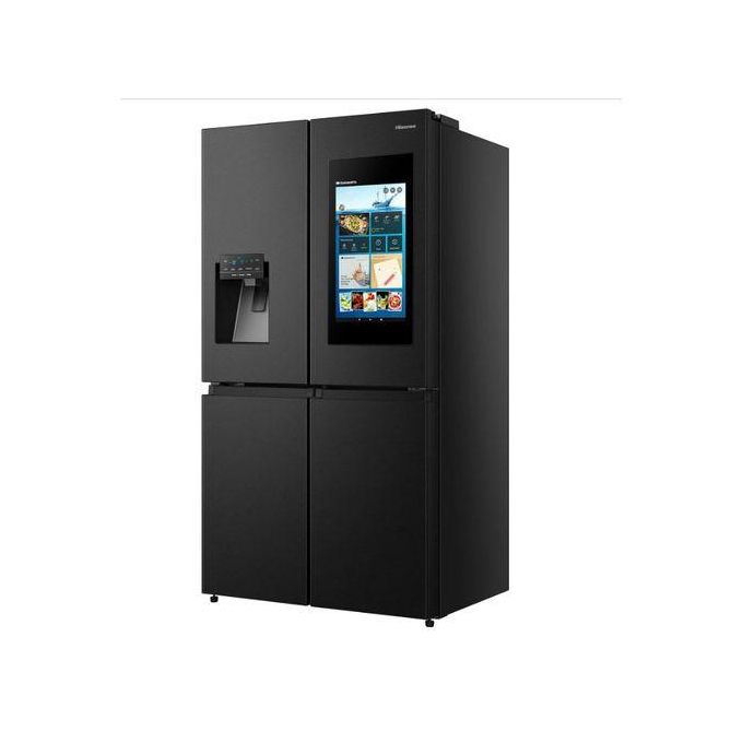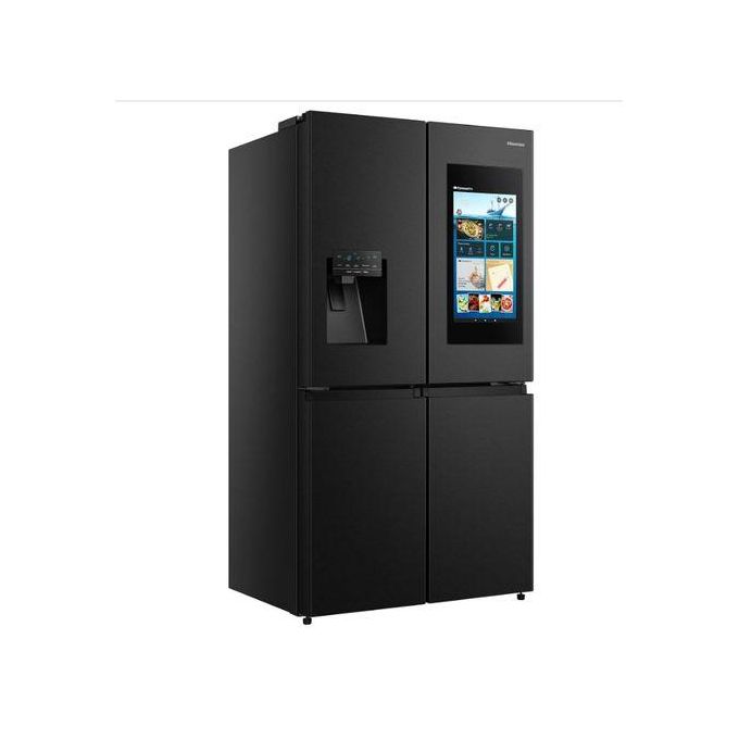 Hisense 680 Liters / 680L Smart Refrigerator Cross Door With Touch Display Screen Water And Ice Dispenser,Metal Cooling, Fridge Mate Black