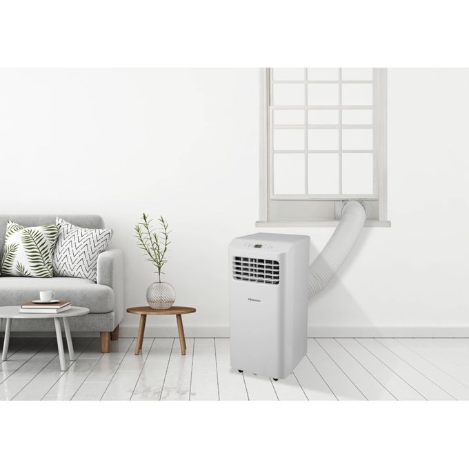 Experience powerful cooling with the Hisense 9000 Btu Mobile Air Conditioner in white. Its high energy efficiency class A saves on electricity costs while offering versatile modes like Sleep, Smart, Turbo, and I feel to suit your comfort needs. Easily manage cooling, dehumidifying, and ventilation with two adjustable airflow speeds. Enjoy convenient features such as an automatic condensate drain, a 24-hour timer, self-diagnosis for error detection, and automatic restart after power outages. Complete with a mounting kit, this unit ensures effortless installation and reliable performance wherever you need it.