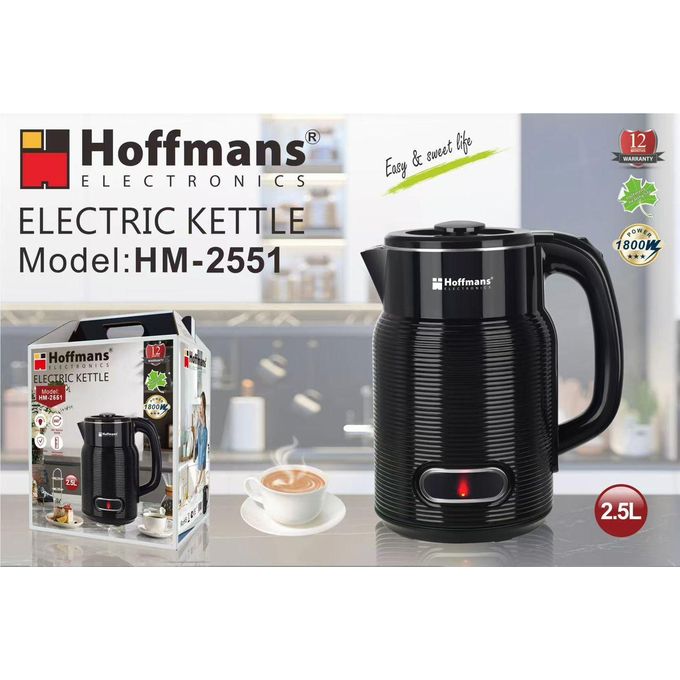 Hoffmans 2.5L Electric Rapid Boil, Stylish Design Kettle HM-2551 - Black