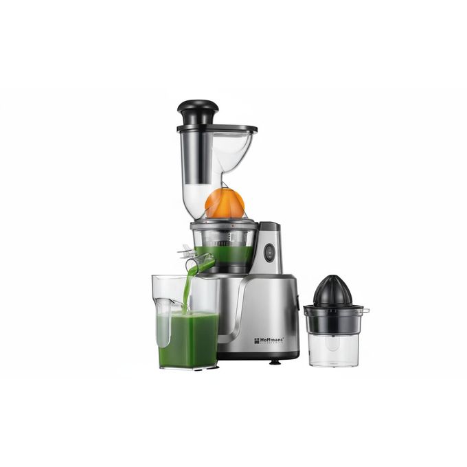 Hoffmans 2-in-1 Vertical Slow Juicer Cold Press Masticating Juicer with Extra-Wide Feed Tube & Citrus Attachment (280W) HM-638 - Silver & Black