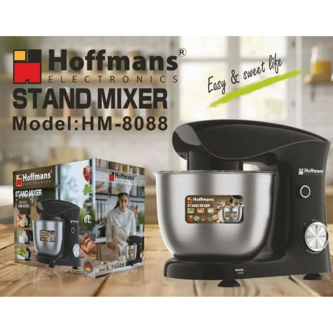 Hoffmans 3-in-1 6L Stand Mixer, Dough Mixer & Food Processor – Model 8088 - Black/Cream