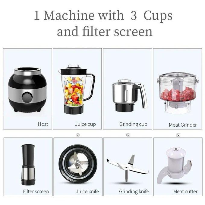 Hoffmans 4 in 1 Multi-function Electric Blender Juicer Fruit Mixer & Food Processor - Silver & Black
