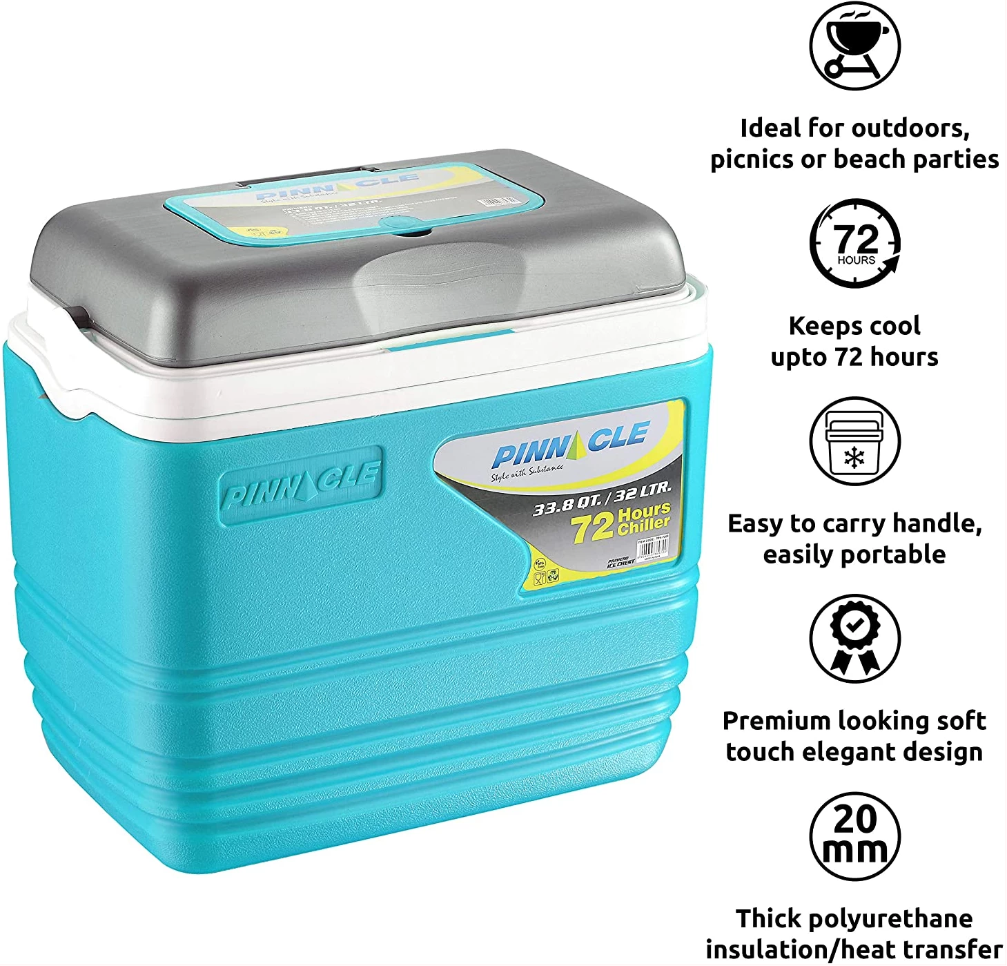Pinnacle Primero Ice Cooler Box, Keeps Cold Upto 72 Hours (32 Litre, Blue)