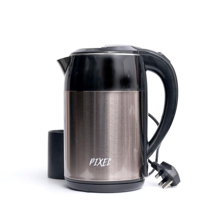 Boil water in minutes with the Pixel 2.5 Liters Fast Boiling Kettle. This premium stainless steel electric kettle delivers rapid heating for your daily tea, coffee, and cooking needs. Available in sleek Silver and Black finishes, it combines modern design with reliable performance. The generous 2.5-liter capacity means fewer refills, while its intuitive controls make operation effortless. Built to last with a full 1-year warranty, this high-quality kettle is the smart choice for any kitchen.