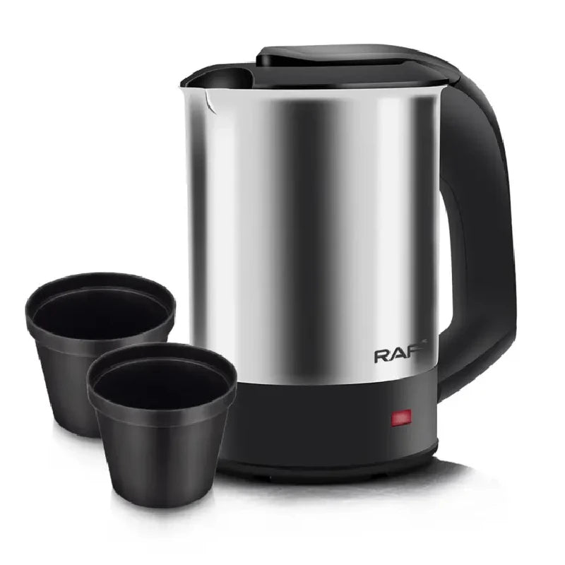 The RAF R-7887 Travel Electric Kettle is your perfect companion for hot beverages anywhere. With a compact 0.5-liter capacity, this lightweight kettle boils water in minutes, making it ideal for travel, camping, or office breaks. Built with a durable stainless steel interior that resists rust, it delivers reliable performance wherever you go. Smart safety features including auto shut-off and boil-dry protection give you peace of mind, while the smooth stainless steel exterior wipes clean effortlessly. Sleek silver and black design fits seamlessly into any lifestyle. Experience convenience without compromise.