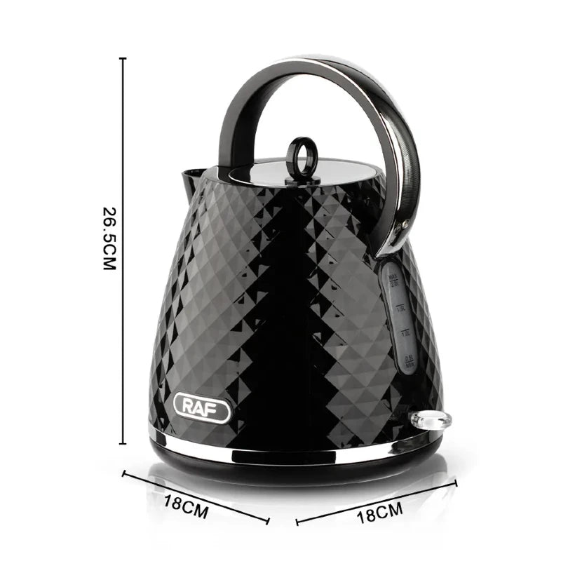 Boil water in minutes with the RAF 2L Stainless Steel Electric Kettle, engineered for speed and reliability. Its powerful 2200W heating element delivers rapid boiling, while the concealed design ensures even heat distribution. The premium brushed stainless steel body combines durability with modern elegance, fitting seamlessly into any kitchen. Cordless convenience meets safety with automatic shut-off and boil-dry protection, so you can brew with confidence. The 360-degree swivel base and ergonomic heat-resistant handle make pouring effortless, while the removable, washable filter guarantees clean water every time. Compact yet capable, this kettle transforms your daily routine into a moment of efficiency and style.