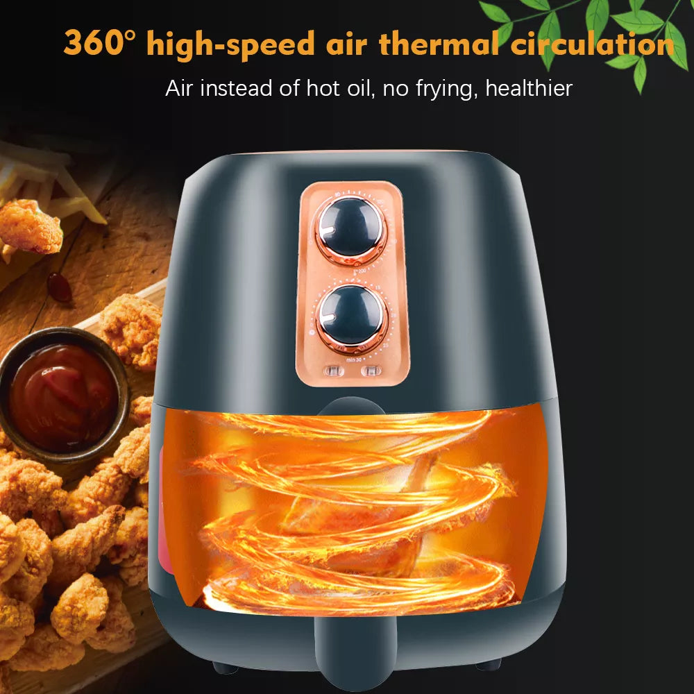 Experience faster, healthier cooking with the RAF Air fryer 4.8L. This versatile kitchen powerhouse uses rapid air technology to fry, bake, and grill your favorite foods 50% faster while consuming less energy. With a generous 4.8-liter capacity, adjustable thermostat for precise temperature control, and a convenient detachable basket, meal preparation becomes effortless. Built-in overheat protection ensures safe operation every time. Transform how you cook—crispy results, minimal oil, maximum convenience.