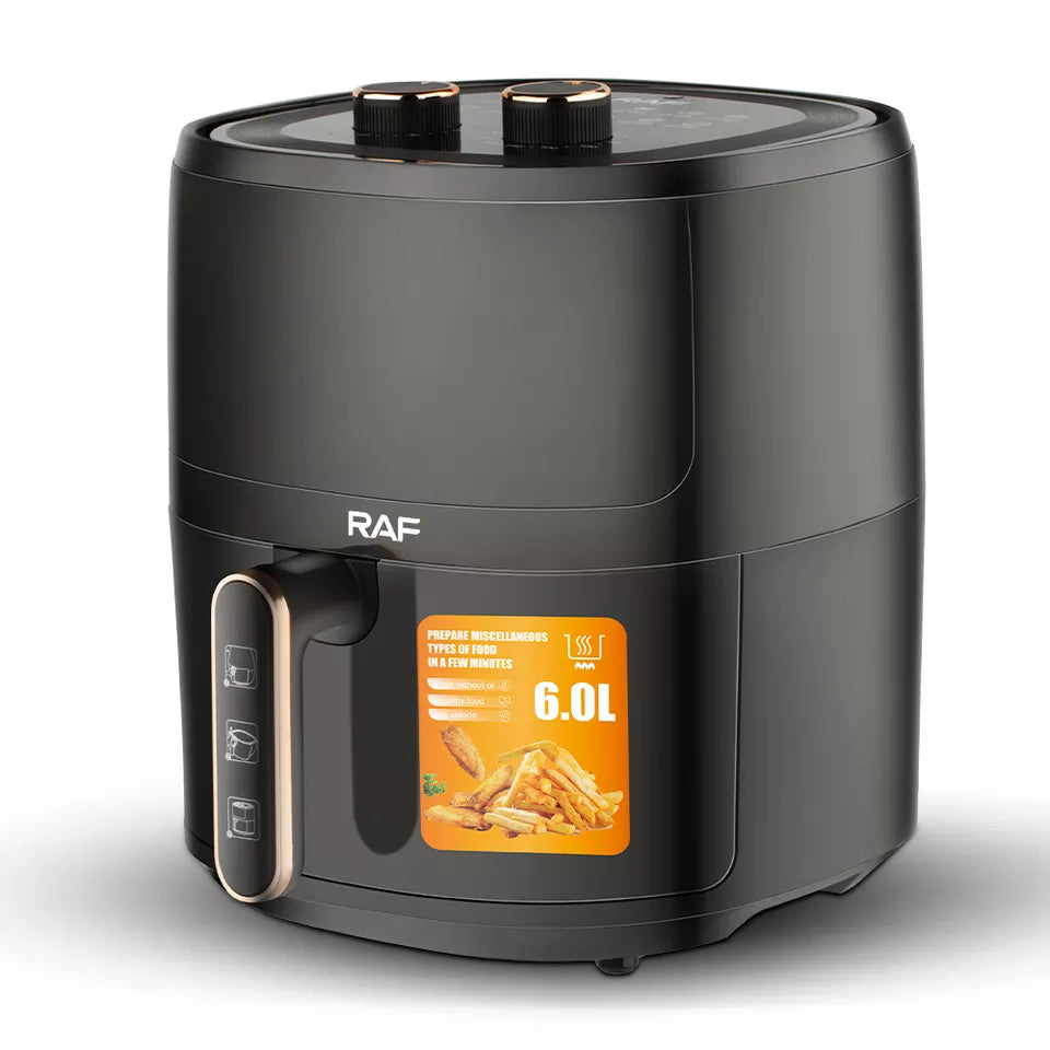 Experience faster, healthier cooking with the RAF Air Fryer 6 Litres. This versatile kitchen powerhouse uses rapid air technology to fry, bake, and grill your favorite foods 80% faster while consuming less energy. With a spacious 6-litre capacity, adjustable temperature and 30-minute timer, you'll have complete control over every meal. The detachable basket makes cleanup effortless, while built-in safety features and overheat protection give you peace of mind. Perfect for families who want delicious results without the guilt—all backed by a comprehensive user manual for easy operation.