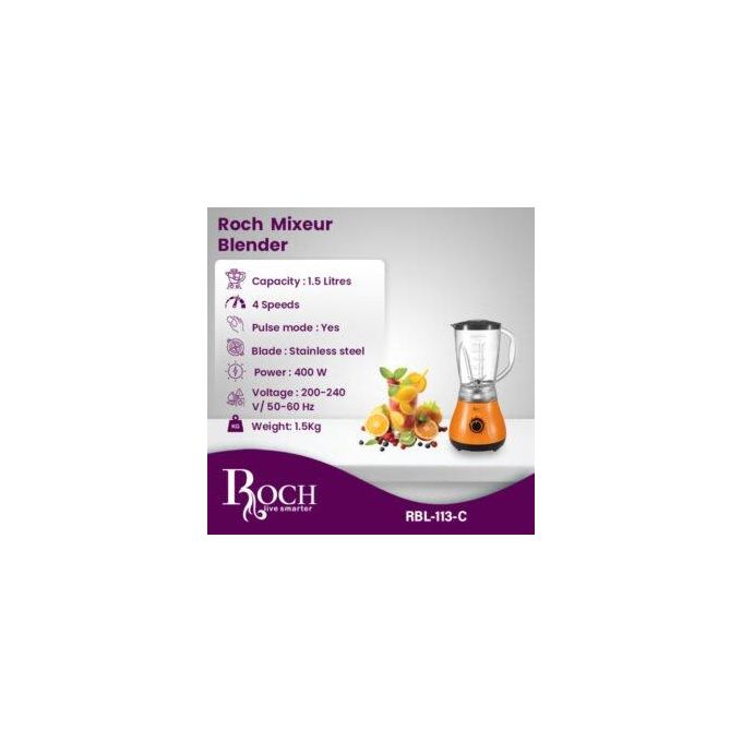 The Roch 2 IN 1 blender transforms your kitchen with versatile power and reliability. Its spacious 1.5L unbreakable jar handles everything from smoothies to ice crushing, while the integrated grinder tackles powders and grains effortlessly. Equipped with a robust 500W motor that runs whisper-quiet, dual-speed settings, and a pulse function, you'll achieve perfect consistency every time. The durable stainless steel blade cuts through tough ingredients with ease, while anti-slip feet keep your blender stable during operation. Simple to use and even simpler to clean, this kitchen workhorse comes backed by a reassuring 2-year warranty. Operates on standard 220-240V AC power.