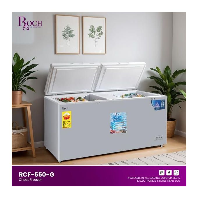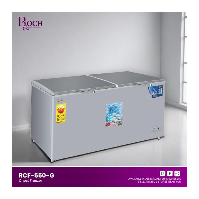 Roch 550 Litres Defrost Deep / Chest Freezer RCF-550-G (Sliding Glass) - Grey