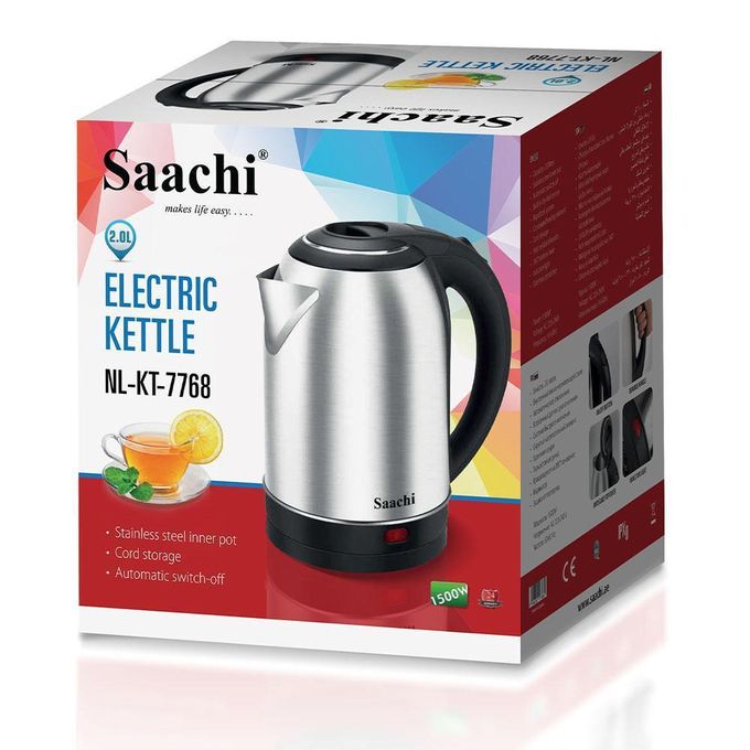 Saachi Original 2L Stainless Electric Kettle 7768 - Silver, Black(1 YR WRTY)