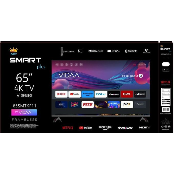 Smartplus 65 Inch Frameless VIDAA 4K V Series Smart Free To Air Tv - Black(1 YR WRNTY)