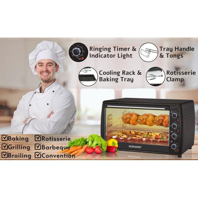 Sonashi 63 Litres Electric Oven STO-732, Mini Oven - Black. (1 YR WRNTY)