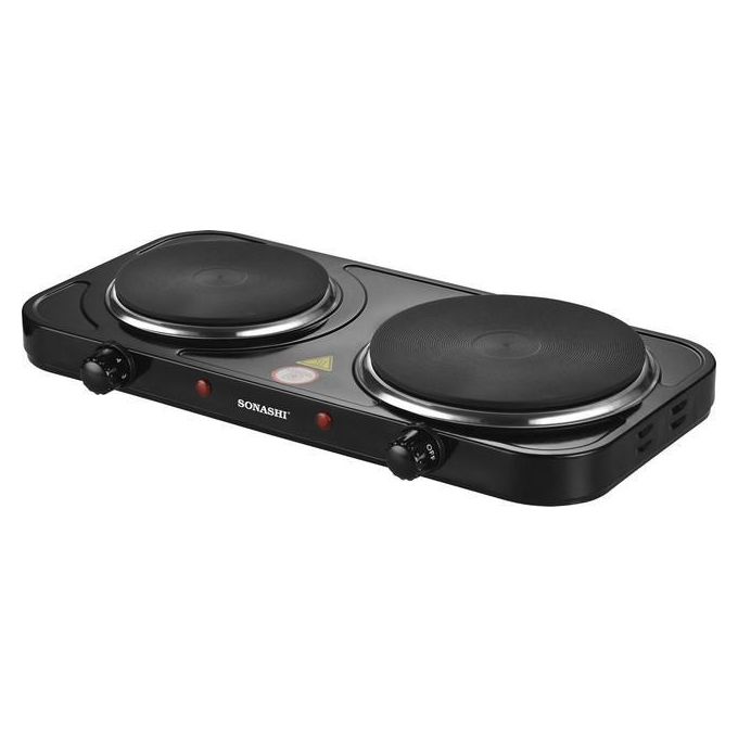Cook with confidence using the Sonashi Double Hot Plate SHP-613. This versatile black appliance features two heating plates—185MM and 155MM—giving you flexibility for different cooking needs. Adjustable temperature control lets you dial in the perfect heat for any dish, while the auto thermostat maintains consistent cooking temperatures. The on/off indicator light keeps you informed, and non-slip rubber feet ensure stable, safe operation on any countertop. Ideal for meal prep, entertaining, or everyday cooking.