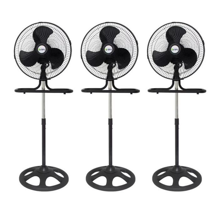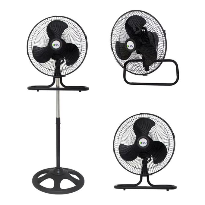 SPJ 18-Inch 3-in-1 Stand, Wall & Table Fan Triple Configuration With Three Fan Motors For Versatile Cooling - Black (2YRS WRNTY)