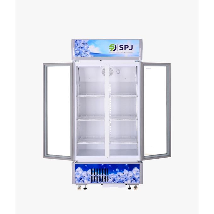 Experience the premium SPJ 700L Double Door Showcase Freezer, designed to maximize your beverage display with mechanical temperature control and adjustable thermostat.