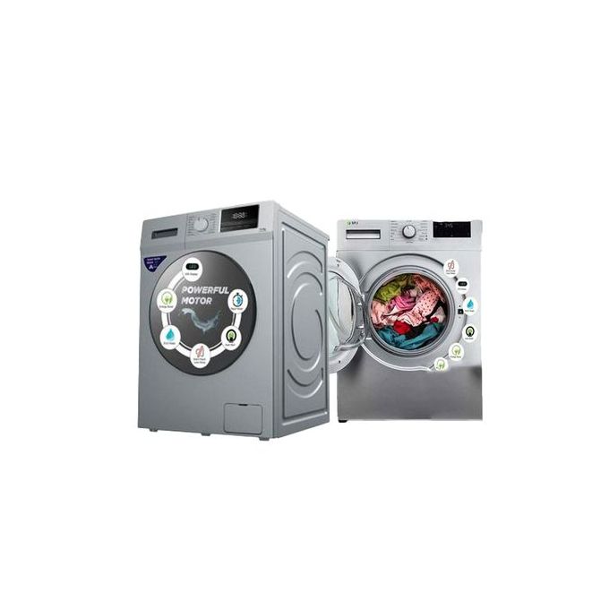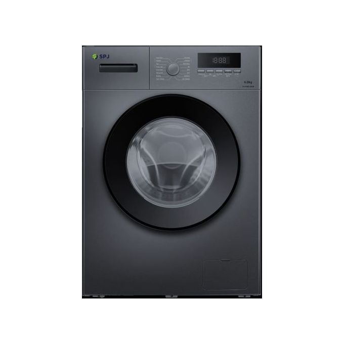 The SPJ 6Kg Front Load Washing Machine combines efficiency with innovation in a sleek grey design.