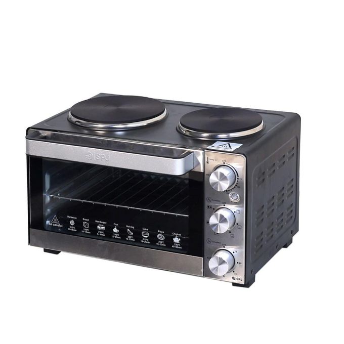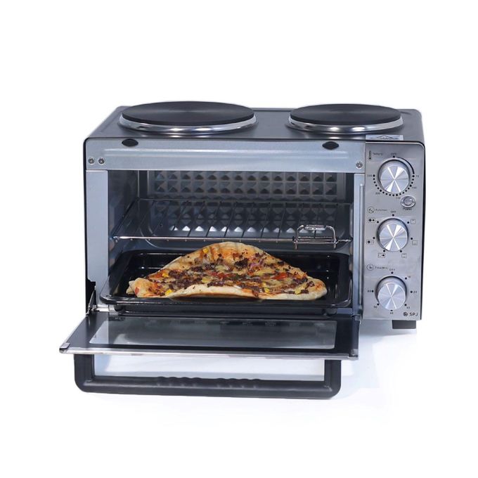 SPJ Evomax 21L Electric Mini Oven With Two Hotplates - Silver/Black