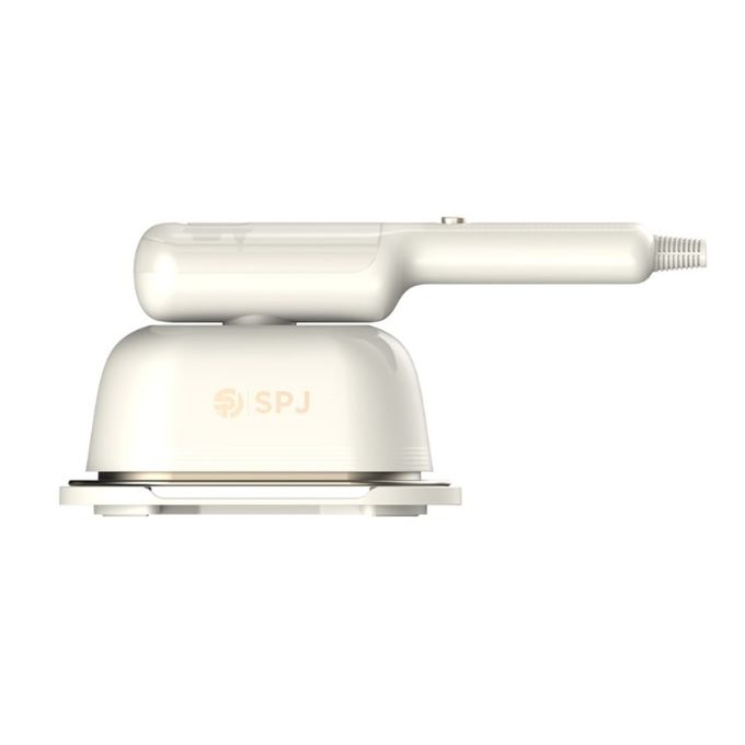 The SPJ Portable Steamer combines versatility and speed in one elegant cream-colored device.