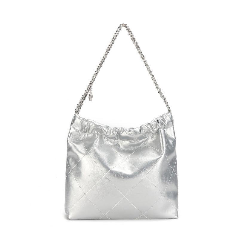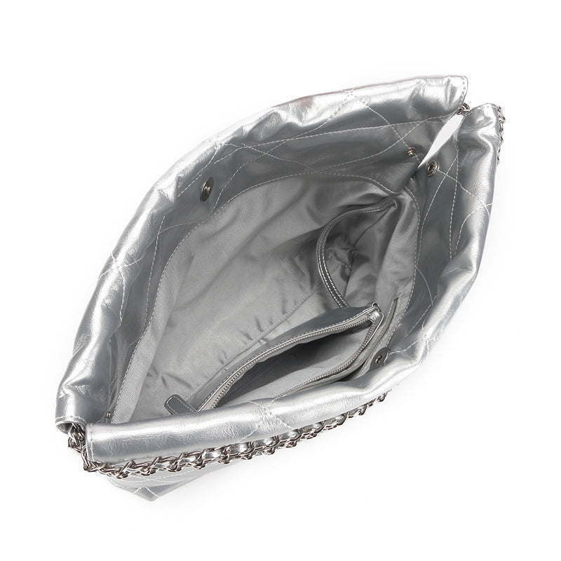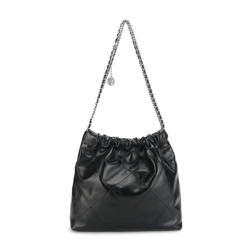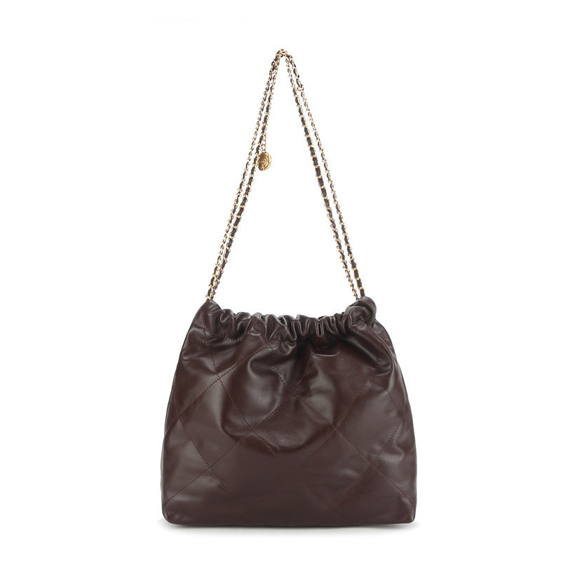 Product information: Lining texture: Polyester Color: Black silver necklace, silver silver necklace, beige gold necklace, pink gold necklace, green gold necklace, chocolate gold necklace Outer bag type: open pocket Leather features: first layer cowhide Material: genuine leather Size: 30*9 * 28cm