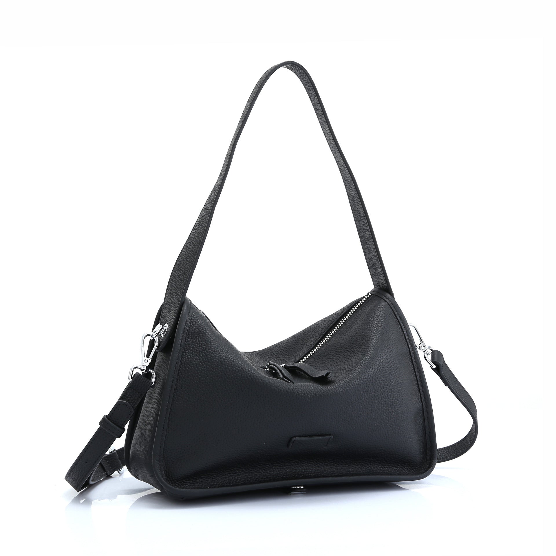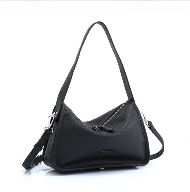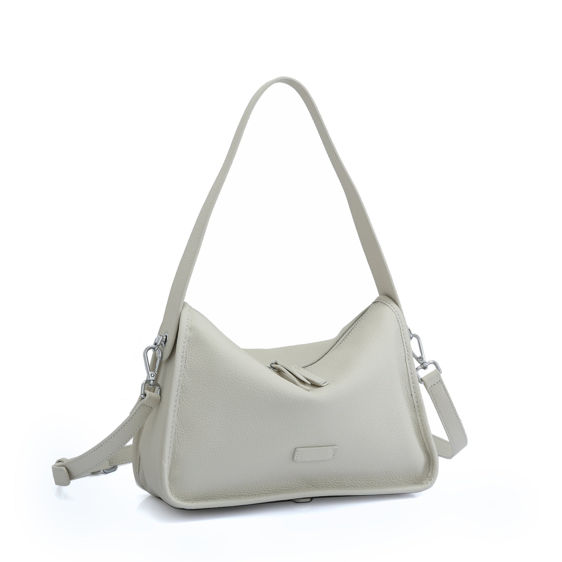 Product information: Lining texture: Polyester Applicable scenario: Daily matching Color: black, white, brown, khaki Outer bag type: open pocket Leather features: first layer cowhide Hardness: medium and soft Material: genuine leather Suitcase shape: dumpling shape Bag internal structure: zipper change bag, mobile phone bag Style: Urban Simplicity Number of shoulder straps: double connector Size: 28CM × 11CM × 19CM