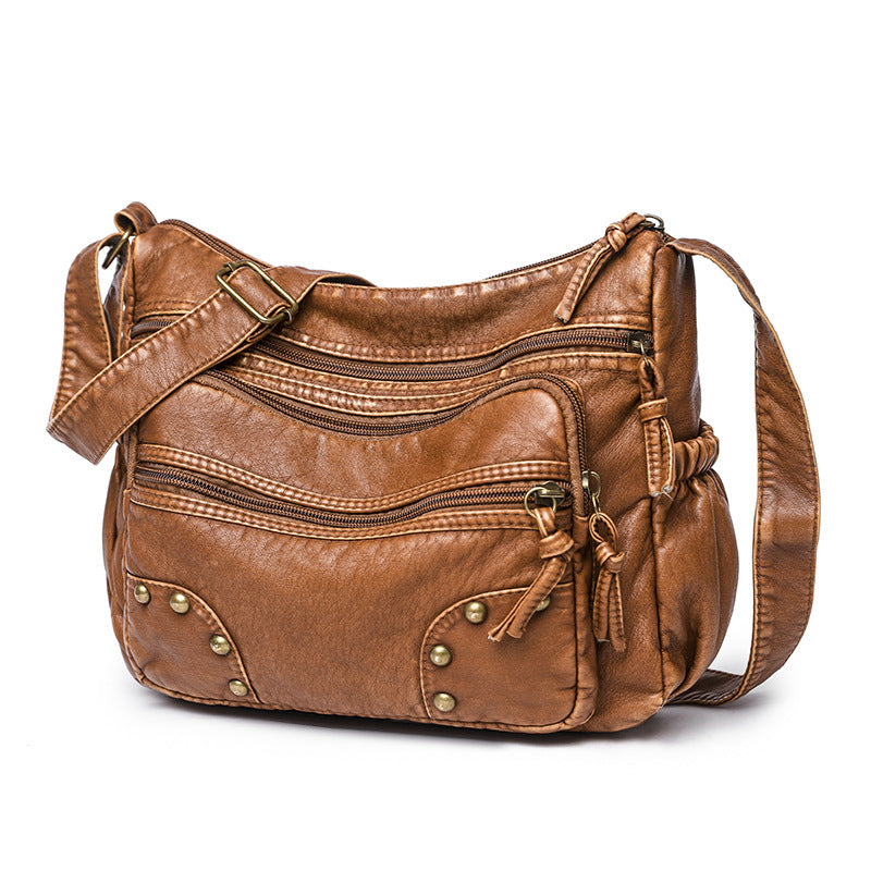 Product information: Lining texture: Polyester Color: brown, blue Material: PU Popular elements: stitching, rivets Style: cross-border Fashion Opening method: zipper
