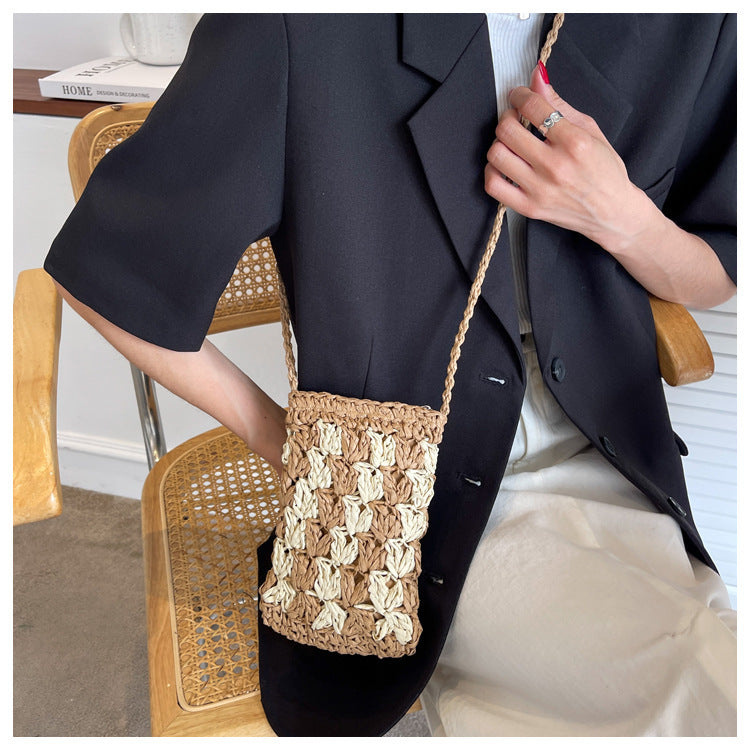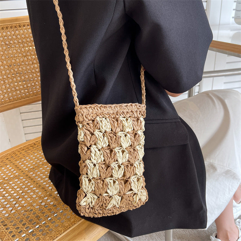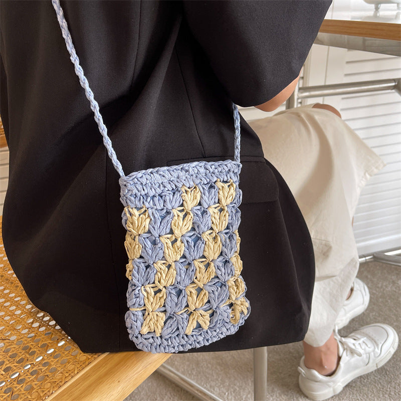 Product information: Lining texture: no lining Pattern: solid color Color: khaki, blue, pink Processing Method: soft surface Lifting parts: soft handle Hardness: medium and soft Material: Straw Suitcase shape: square vertical model Package internal structure: mobile phone bag Popular elements: Weaving Yes/No lining cloth: None