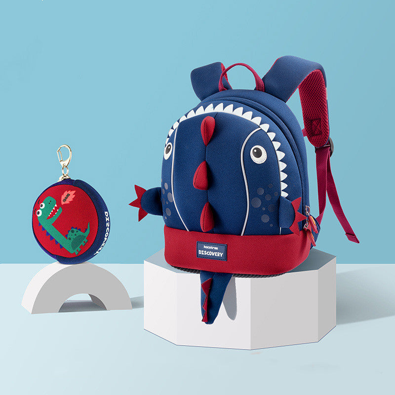 Applicable gender: neutral/male and female Applicable school age: children Material: diving fabric Bag size: medium Capacity: 20-35L Bag internal structure: sandwich zipper bag Lining texture: polyester fiber Color: Blue Shark Large Size, Navy Blue Dinosaur Large Size, Navy Blue Dinosaur Small Size Size: S: Length 22cm, Width 14cm, Height 27cm L: Length 27cm, width 15cm, height 34cm