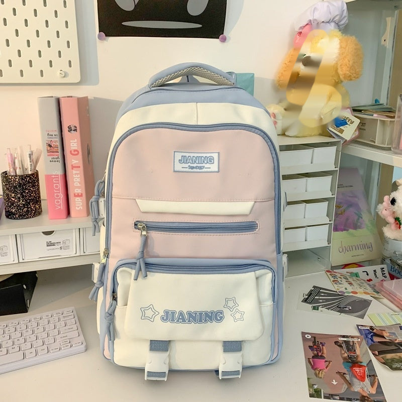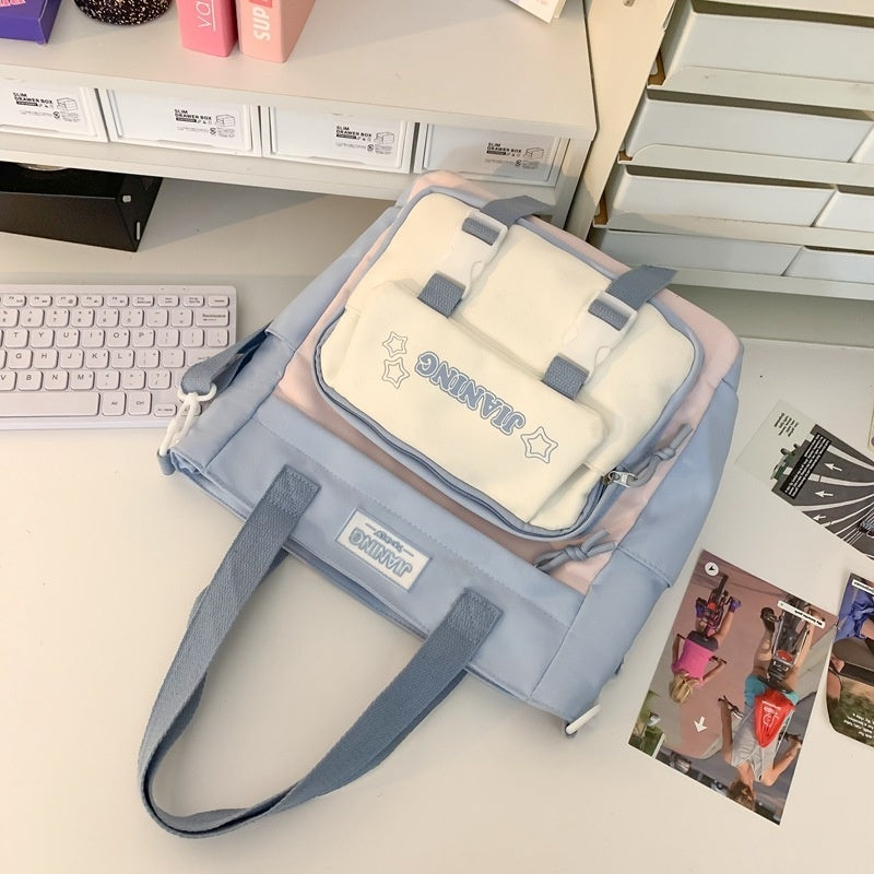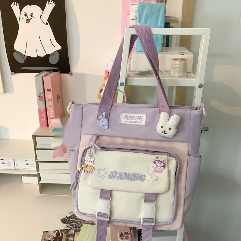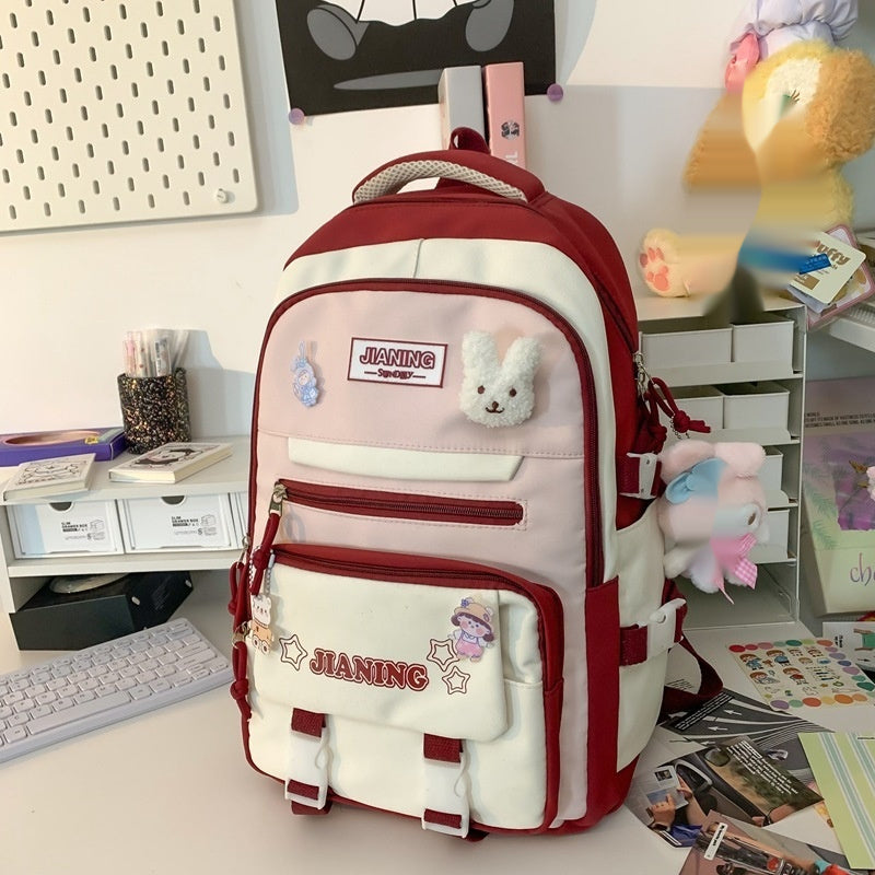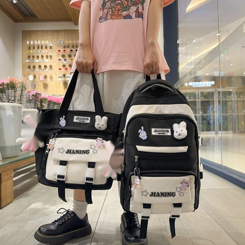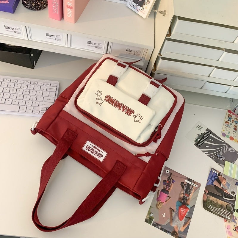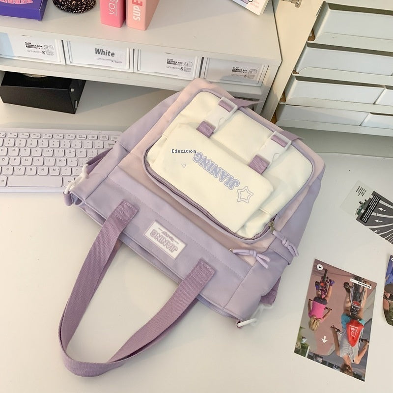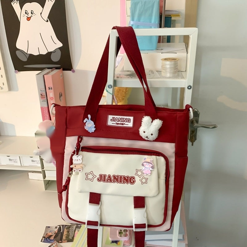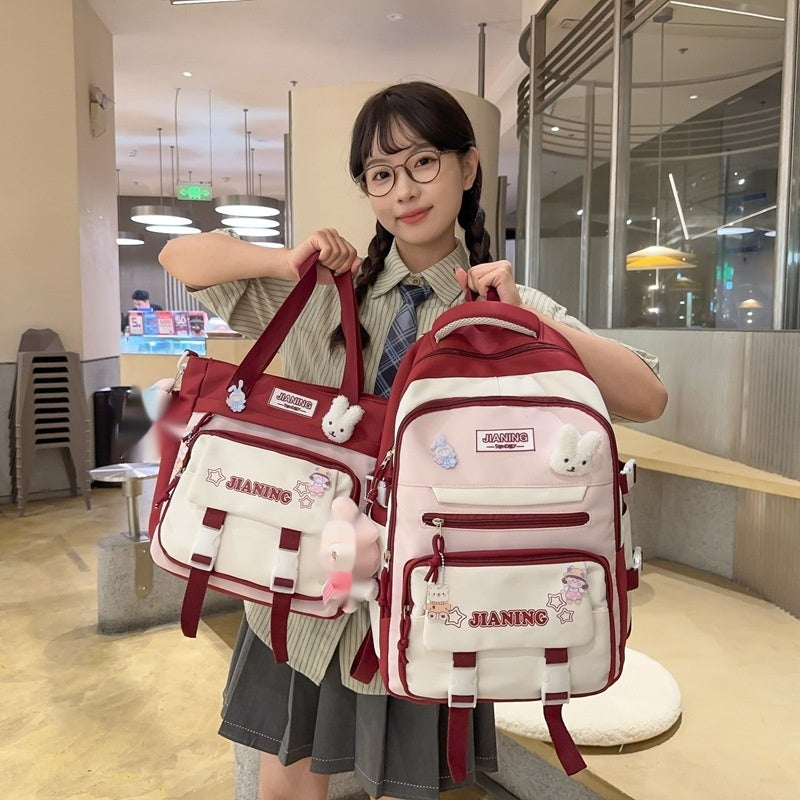Color: red backpack with badge pendant, blue backpack with badge pendant, purple backpack with badge pendant, black backpack with badge pendant, red backpack without badge pendant, blue backpack without badge pendant, purple backpack without badge pendant, black backpack without badge pendant, red tuition bag with badge pendant, Blue tuition bag with badge pendant, purple tuition bag with badge pendant, black tuition bag with badge pendant, red tuition bag without badge pendant, blue tuition bag without badge pendant, purple tuition bag without badge pendant, black tuition bag without badge pendant