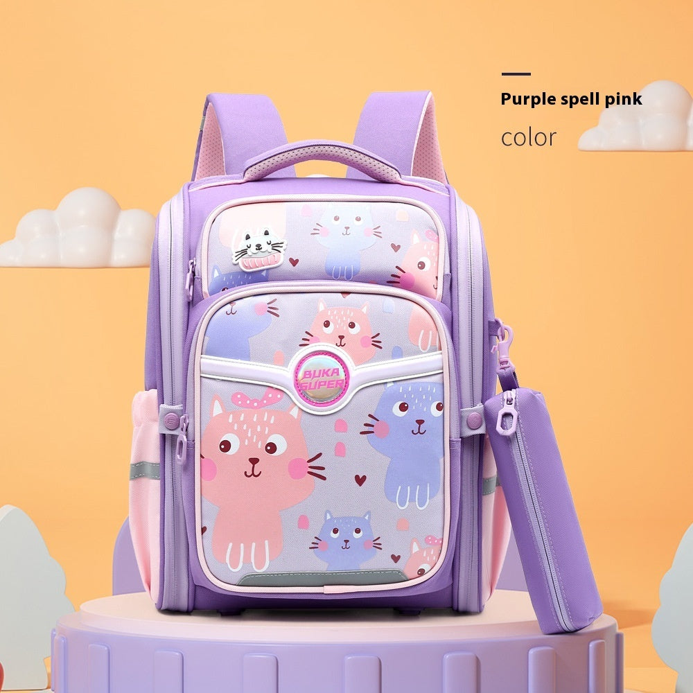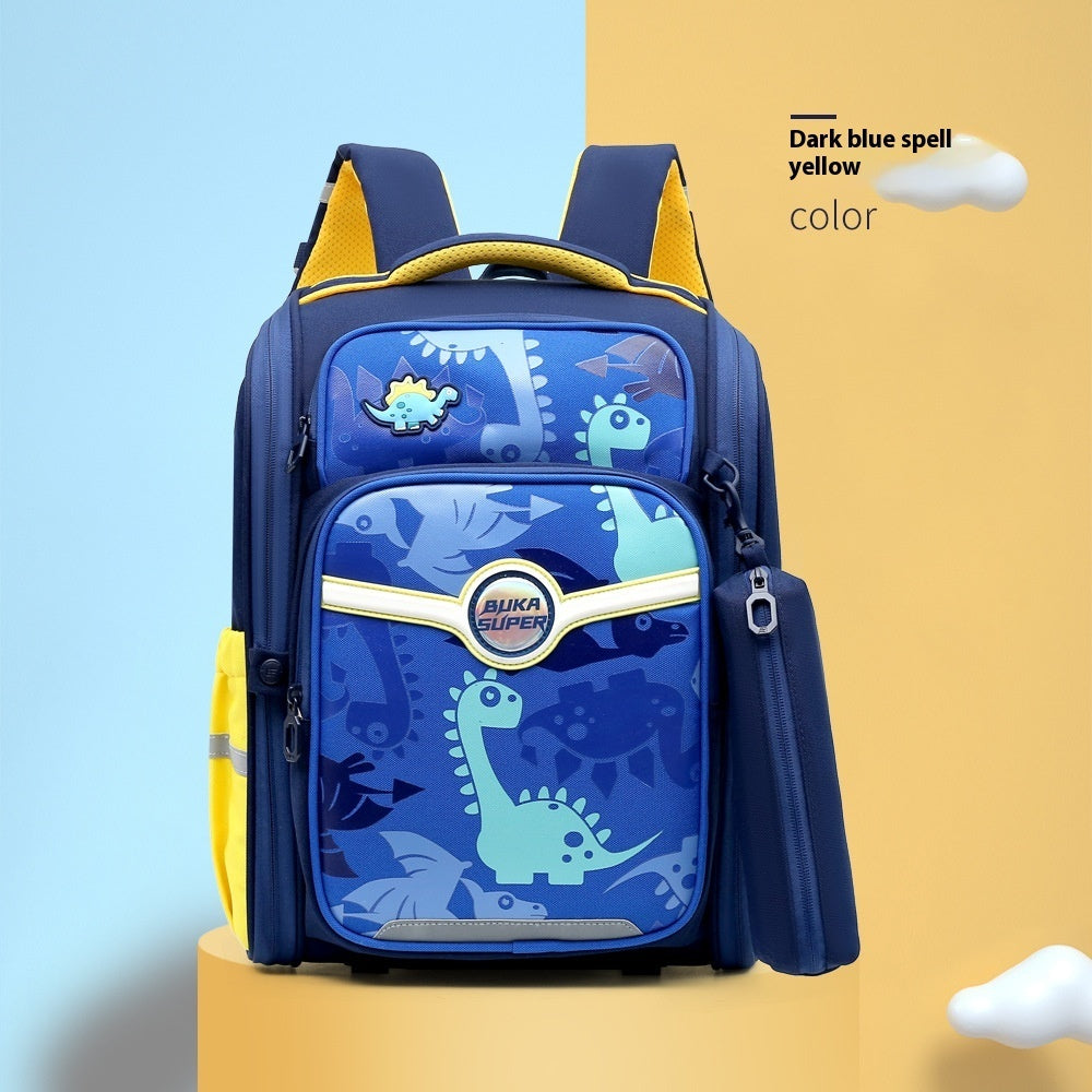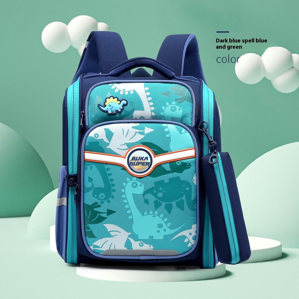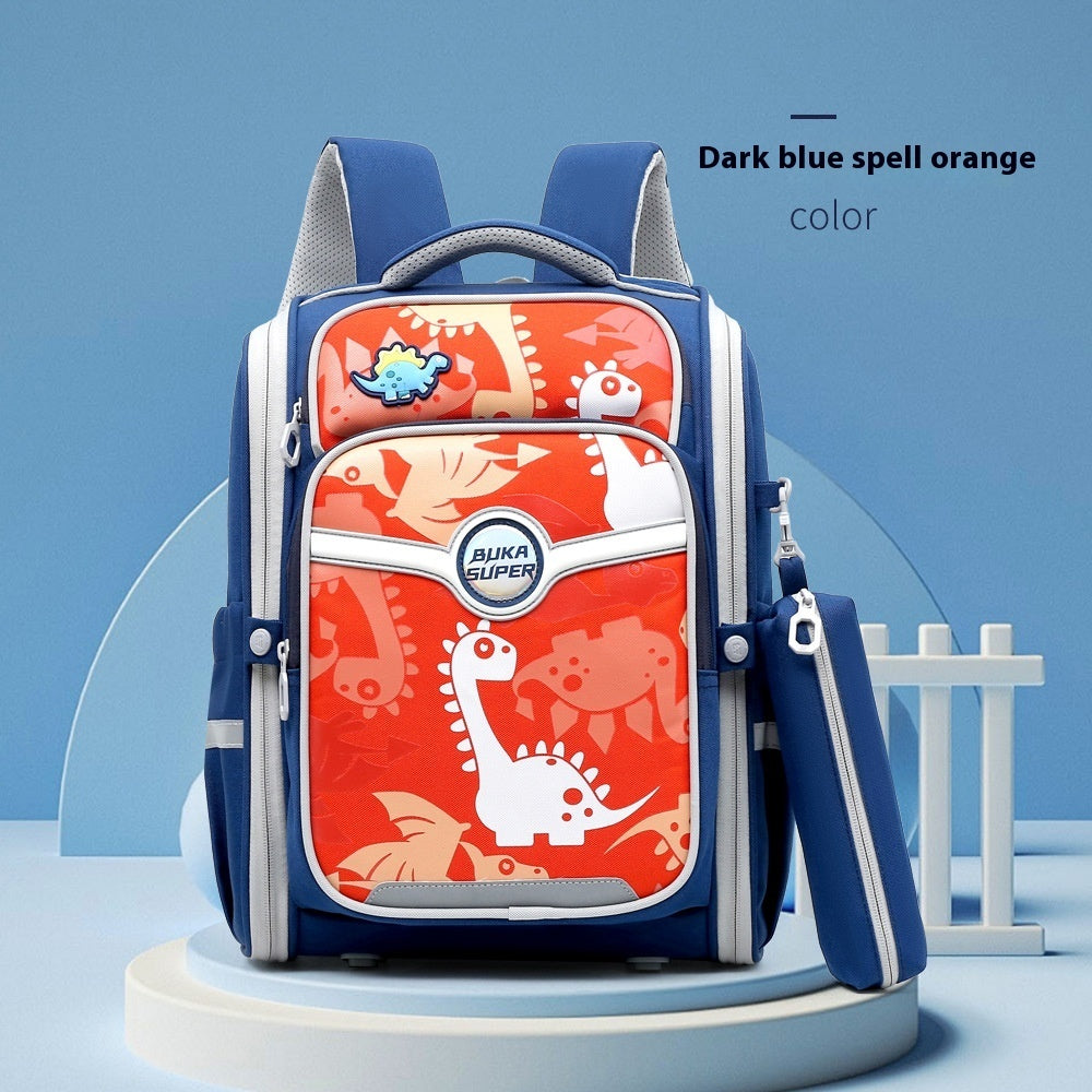 Product information: Lining texture: Polyester Pattern: Animal Applicable scenario: School Education Color: watermelon powder light green, dark blue blue green, purple splicing pink, dark blue and yellow, blue green splicing pink, dark blue Orange Applicable gender: neutral/both men and women Function: breathable, wear-resistant, anti-seismic, burden reduction Material: Oxford cloth Popular elements: Printing Style: modern fashion cool Applicable school age: Primary School