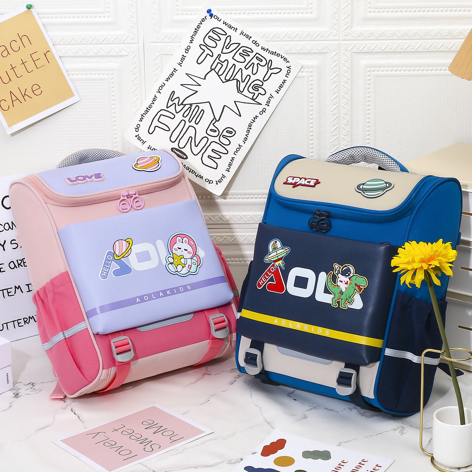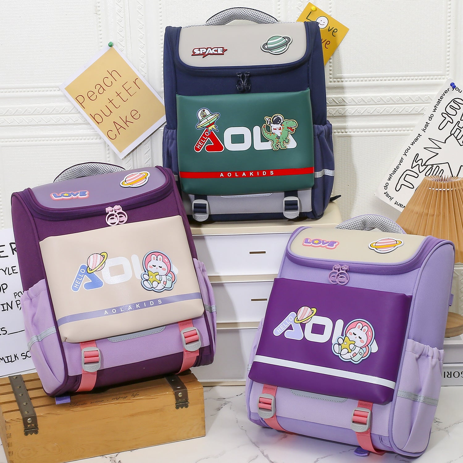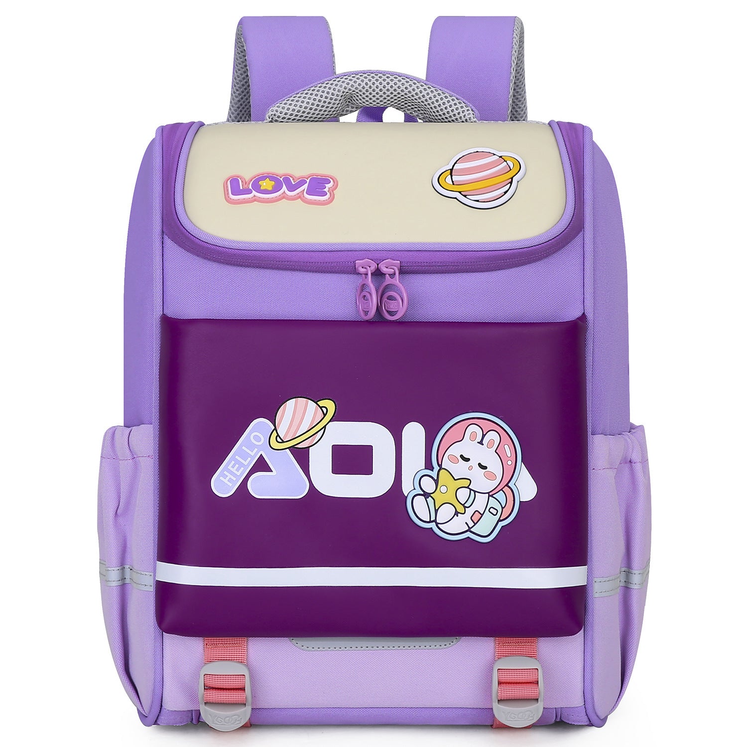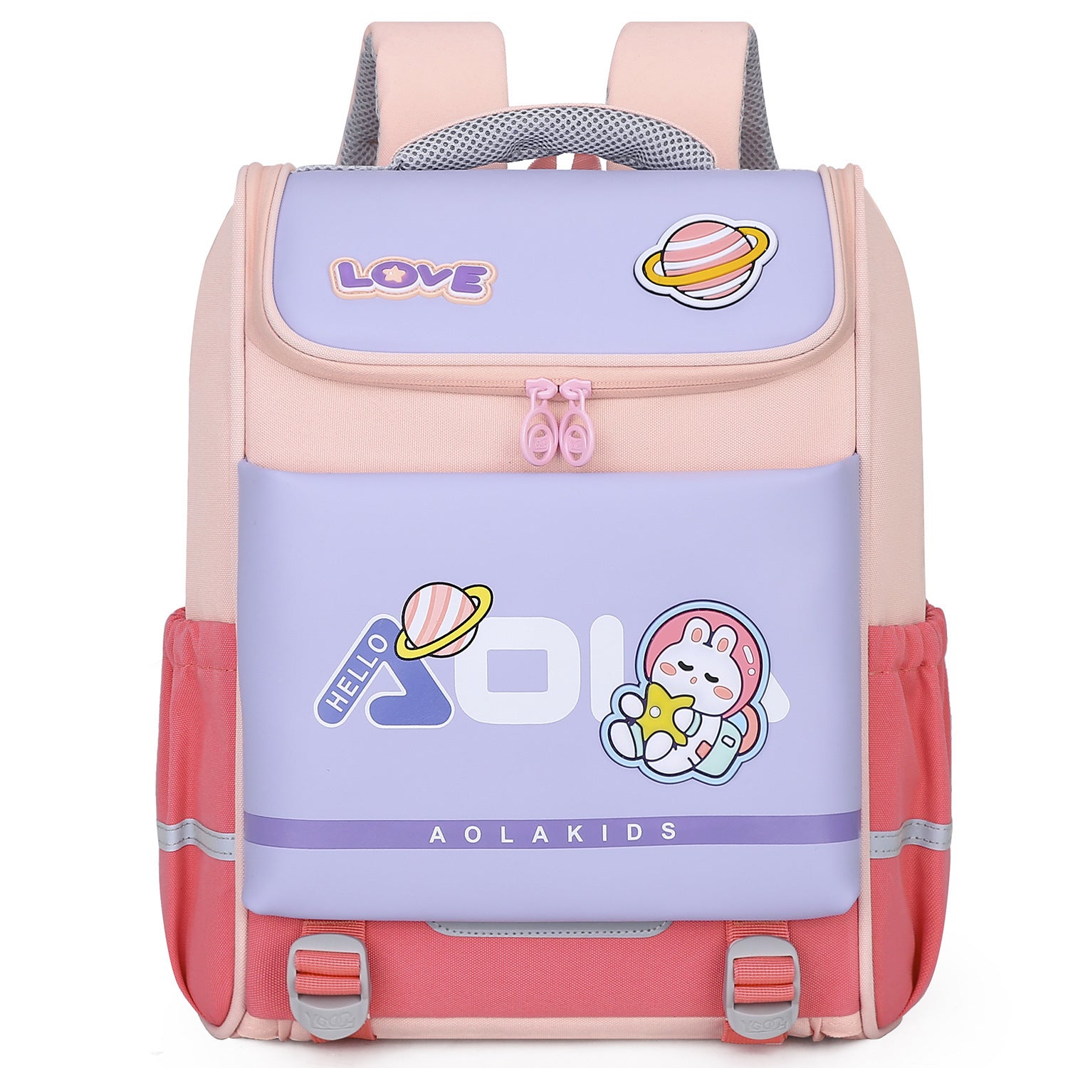 Product information: Lining texture: Polyester Color: purple, light pink purple, cameo Brown green, light blue, dark blue Function: breathable, waterproof, wear-resistant, burden-reducing Material: Oxford cloth Size: 38*15 * 29cm Bearing system: Curved shoulder strap Popular elements: letters, stitching Style: childlike cute Applicable school age: Primary School