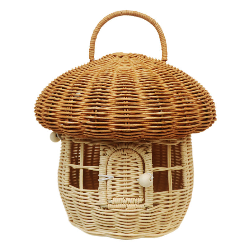 Product information: Color: rattan mushroom bag, rattan ACORN bag, rattan pine cone bag, rattan mushroom bag (red dot) Material: Wicker/straw Scope of Application: Cosmetics/jewelry, others Style: ins style