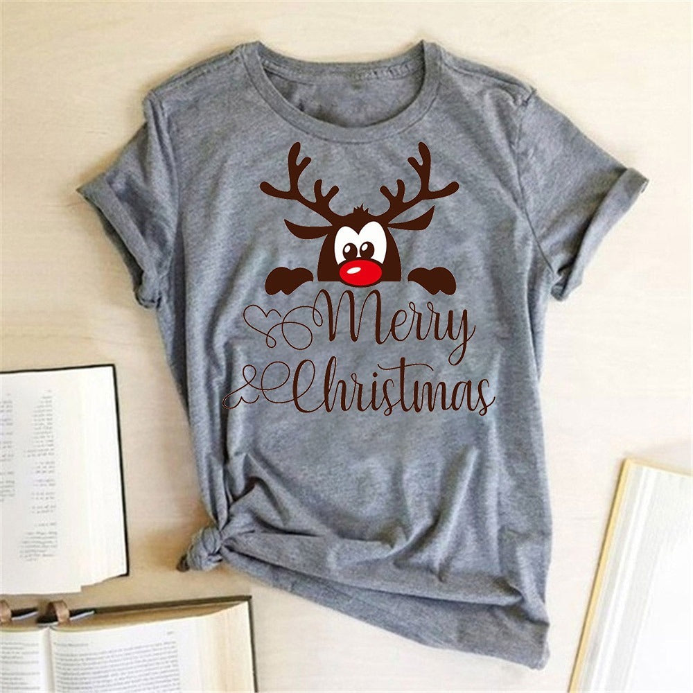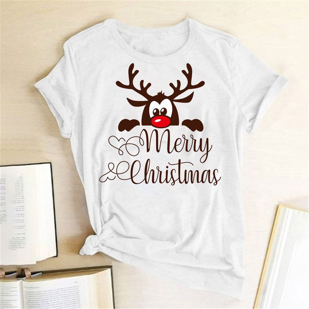 Ladies Fashion Elk Print T Shirt Short Sleeve
