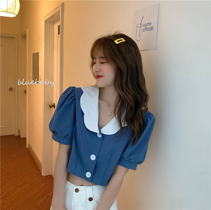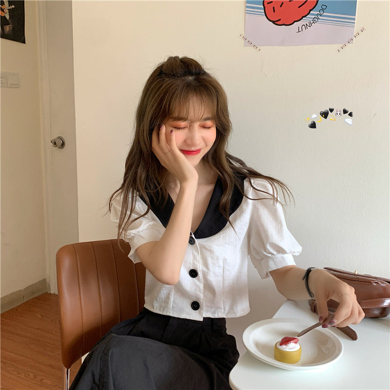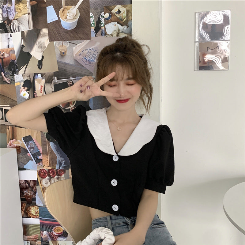 Women''s Clothing Short Sleeve Net Red Foreign Style Versatile Short Bubble Sleeve Sweater