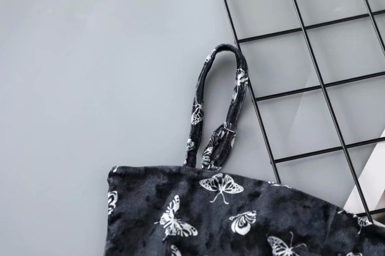 Sexy vintage retro velvet butterfly dress tight club mini dress black strap dress